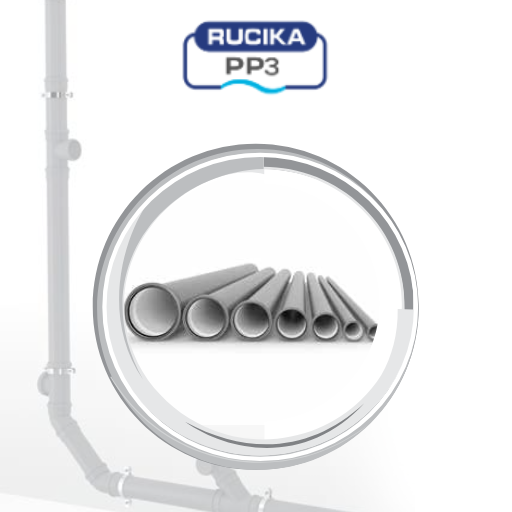 Rucika PP3 adalah sistem pipa air buangan yang menggunakan material khusus berkualitas tinggi. Material ini dirancang untuk menahan air buangan panas sekaligus meredam suara aliran air. Teknologi sambungan push-fit socket dengan hydraulic seal memudahkan proses instalasi tanpa memerlukan alat khusus. Sistem ini menjadi solusi praktis untuk saluran air buangan dan air hujan di berbagai bangunan.